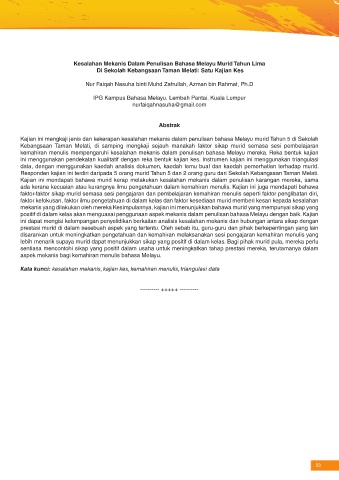 Kajian ini mengkaji jenis dan kekerapan kesalahan mekanis dalam penulisan bahasa Melayu murid Tahun 5 di Sekolah