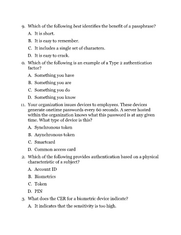 9. Which of the following best identifies the benefit of a passphrase?