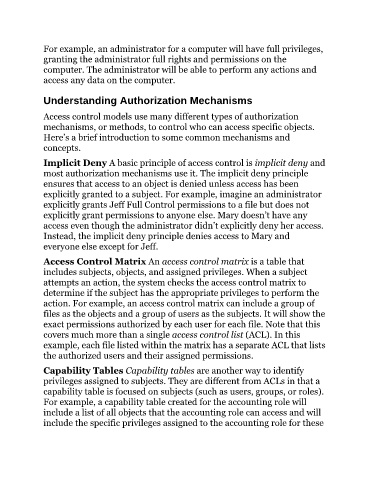 explicitly granted to a subject. For example, imagine an administrator
