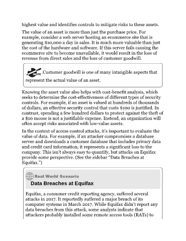 value of data. For example, if an attacker compromises a database