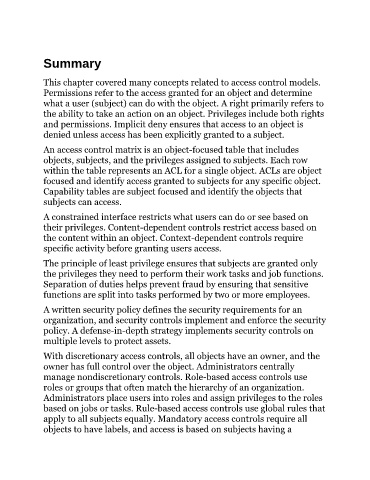 This chapter covered many concepts related to access control models.