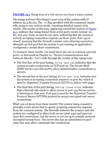 15.1, indicate that nmap found three active ports on the system: 22,