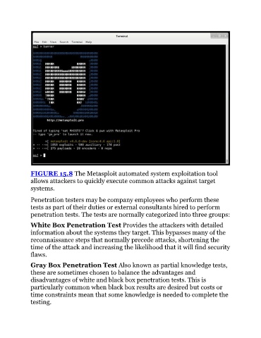 FIGURE 15.8 The Metasploit automated system exploitation tool