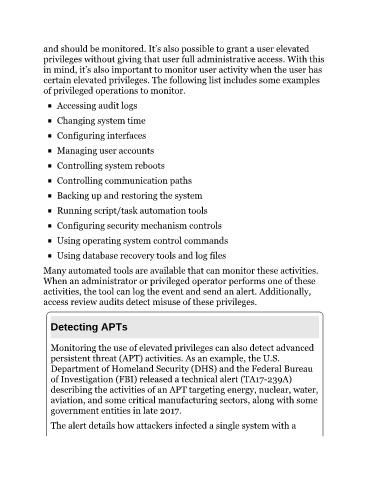 Monitoring the use of elevated privileges can also detect advanced