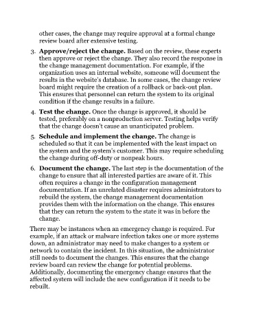 other cases, the change may require approval at a formal change