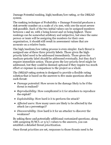 Damage Potential ranking, high/medium/low rating, or the DREAD