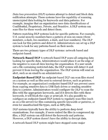 out a file containing restricted data, the DLP system will detect it and