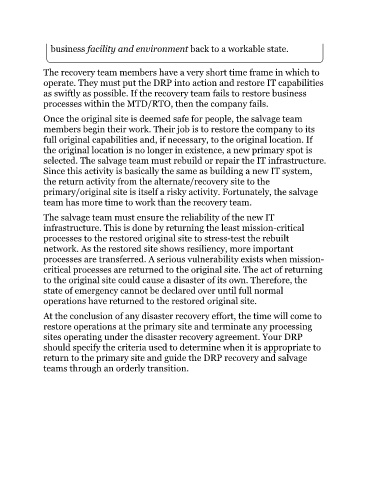 selected. The salvage team must rebuild or repair the IT infrastructure.