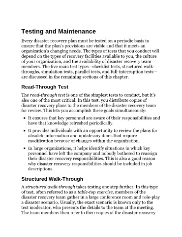 throughs, simulation tests, parallel tests, and full-interruption tests—