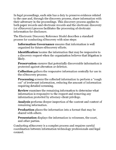 (or eDiscovery) process facilitates the processing of electronic