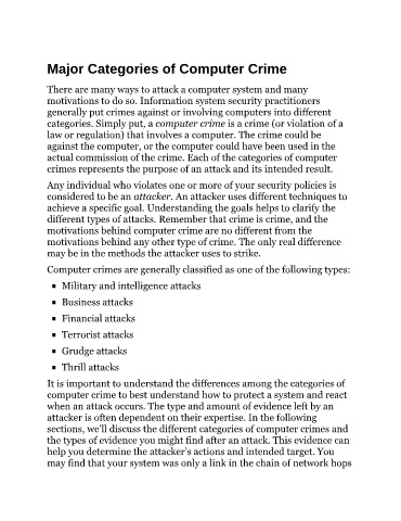 Major Categories of Computer Crime