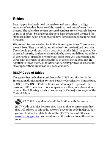 or (ISC) . The (ISC) Code of Ethics was developed to provide the