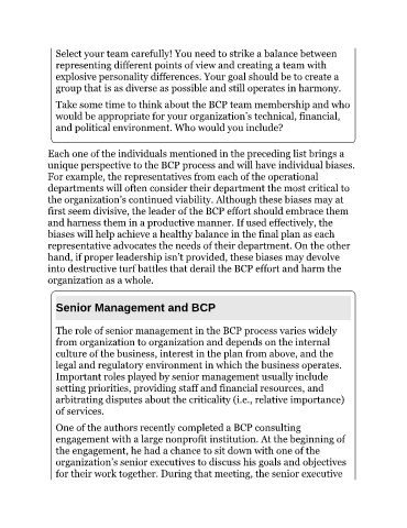 unique perspective to the BCP process and will have individual biases.