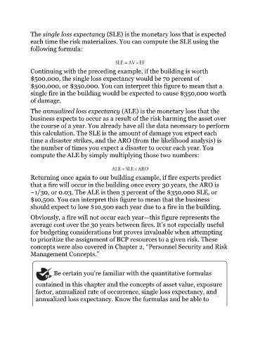 The annualized loss expectancy (ALE) is the monetary loss that the