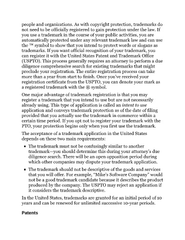 people and organizations. As with copyright protection, trademarks do