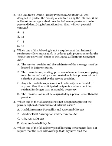 12. The Children’s Online Privacy Protection Act (COPPA) was