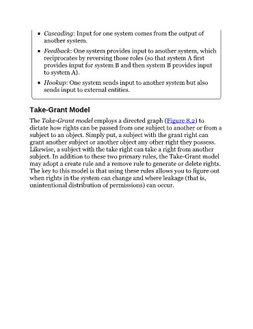 The Take-Grant model employs a directed graph (Figure 8.2) to