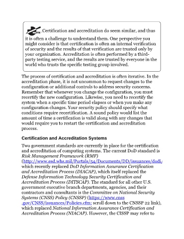 Accreditation Process (NIACAP). However, the CISSP may refer to