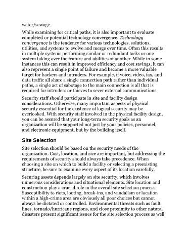 disasters present significant issues for the site selection process as well