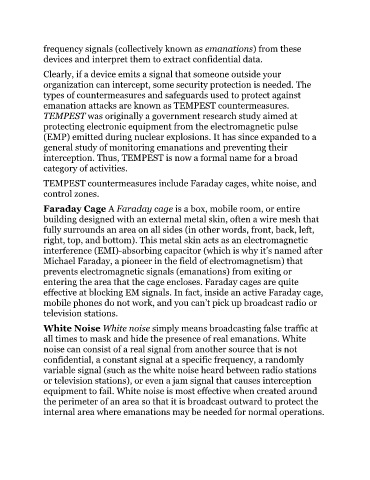 TEMPEST countermeasures include Faraday cages, white noise, and