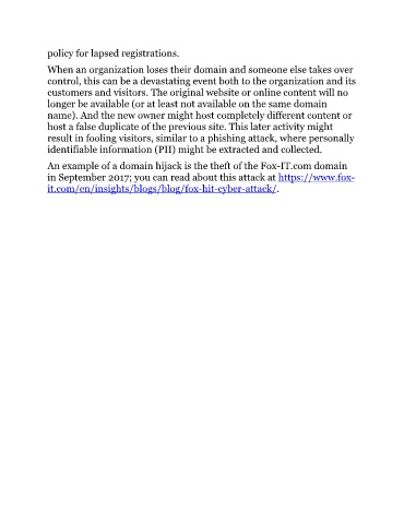 An example of a domain hijack is the theft of the Fox-IT.com domain