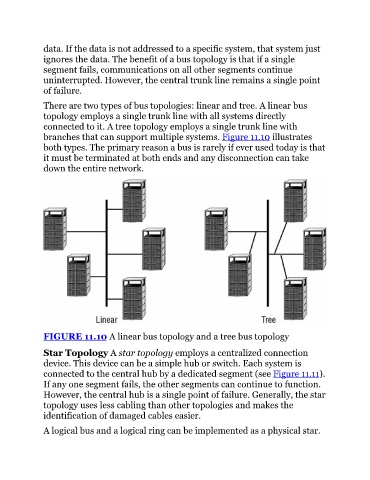 ignores the data. The benefit of a bus topology is that if a single