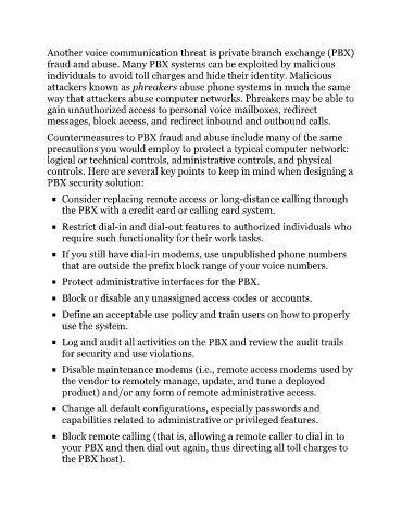 fraud and abuse. Many PBX systems can be exploited by malicious