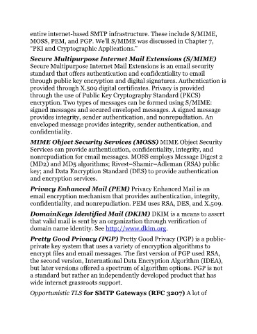 entire internet-based SMTP infrastructure. These include S/MIME,