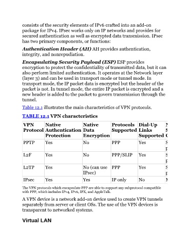 Table 12.1 illustrates the main characteristics of VPN protocols.