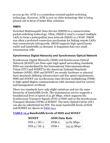 TABLE 12.4 Bandwidth levels of SDH and SONET