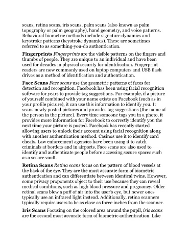 Retina Scans Retina scans focus on the pattern of blood vessels at