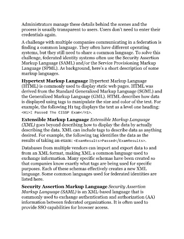 language. Some common languages used for federated identities are