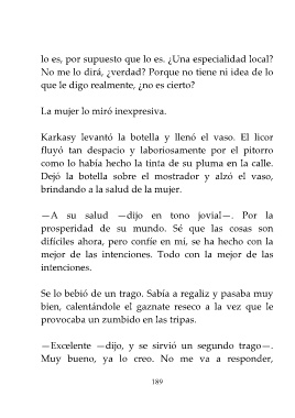 Karkasy levantó la botella y llenó el vaso. El licor