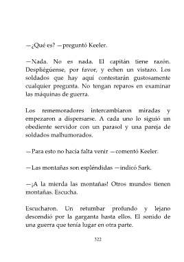 —Las montañas son espléndidas —indicó Sark.