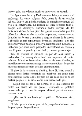 El pico de la criatura se abrió y, bajo él, Isaac acertó a