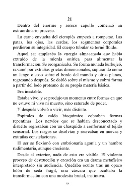 transformación. Se reorganizaba. Su forma mutada burbujeó,