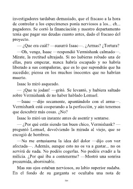 — ¿Que era cuál? —susurró Isaac—. ¿Armas? ¿Tortura?