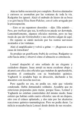 milicia avanzaba hacia Lemuel desde detrás de sus escudos.