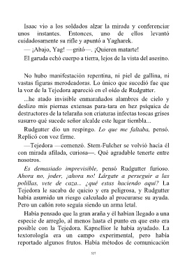 la voz de la Tejedora apareció en el oído de Rudgutter.