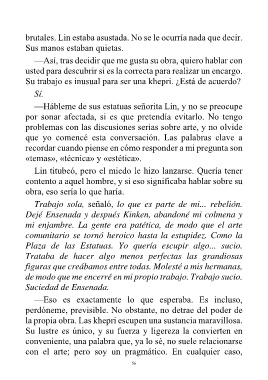 —Hábleme de sus estatuas señorita Lin, y no se preocupe