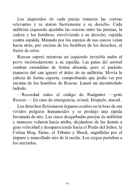 encima de los hombros de Rescue. Lanzó un incontrolado