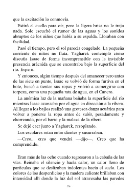 mientras Isaac avanzaba por el agua en dirección a la ribera.