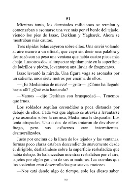 y se asomaba sobre la cornisa, Mediamisa le disparaba. Los
