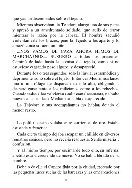 Debajo de ella el Cancro fluía por la ciudad, moteado por