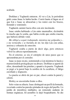 que Lin e Isaac se abrazaban y los rodeó con los brazos,