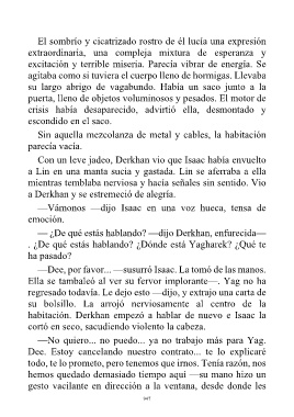 habitación. Derkhan empezó a hablar de nuevo e Isaac la