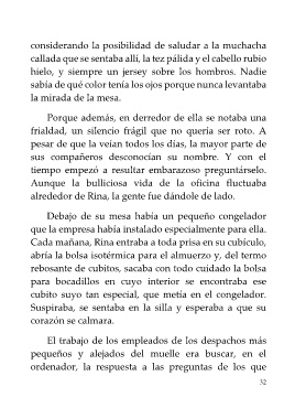 Cada mañana, Rina entraba a toda prisa en su cubículo,