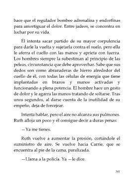 de dolor y le agarra las manos tratando de soltarse. Tras