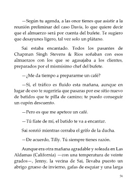 —De acuerdo, Tilly. Tú siempre tienes razón.