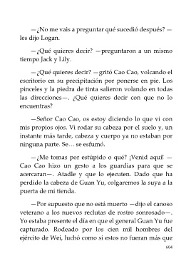 —¿Qué quieres decir? —gritó Cao Cao, volcando el